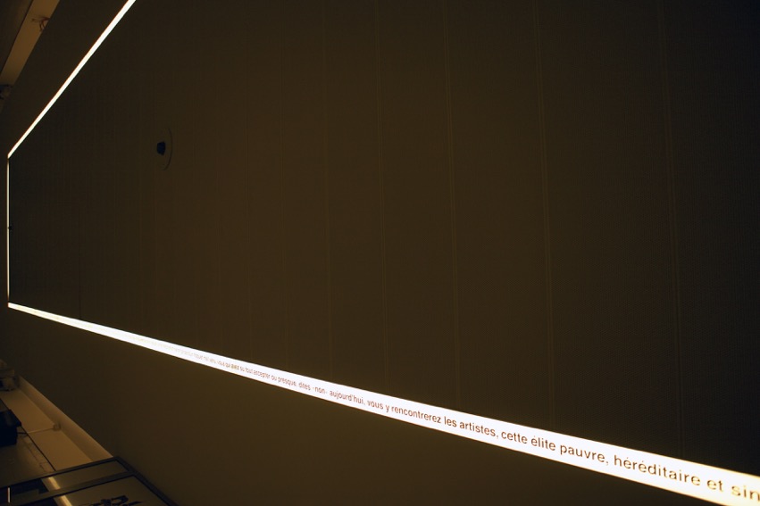Entrez en hypnose, vous qui, d’une manière ou d’une autre en êtes arrivé à vous retrouver ici dans l’illusion imitée, entrez dans ce vestige en devenir, enfin parricide de l’artiste infaillible qui a failli, faites un pas de plus, puis un autre et débordez dans la danse chatoyante, vous ne comprendriez pas qu’on vous laisse là, hors de l’emballage et du vertige sans lequel votre respiration serait prise d’un hoquet mal venu, vous qui avez su tout accepter ou presque, dites «non» aujourd’hui, vous y rencontrerez les artistes, cette élite pauvre, héréditaire et singulière de la collectivité démocratique, vous y trouverez les spécialistes de l’art et des institutions quels qu’ils soient et qui prolifèrent sans audace, répétez «non» dans une hargne sans poussière, haletante, poétique et que ce souffle expulsé soit des flèches trempées dans la sueur de la nuit et le curare, sa magie aux sanglot séditieux, vous qui êtes venu machinal, restez l’être devenu.